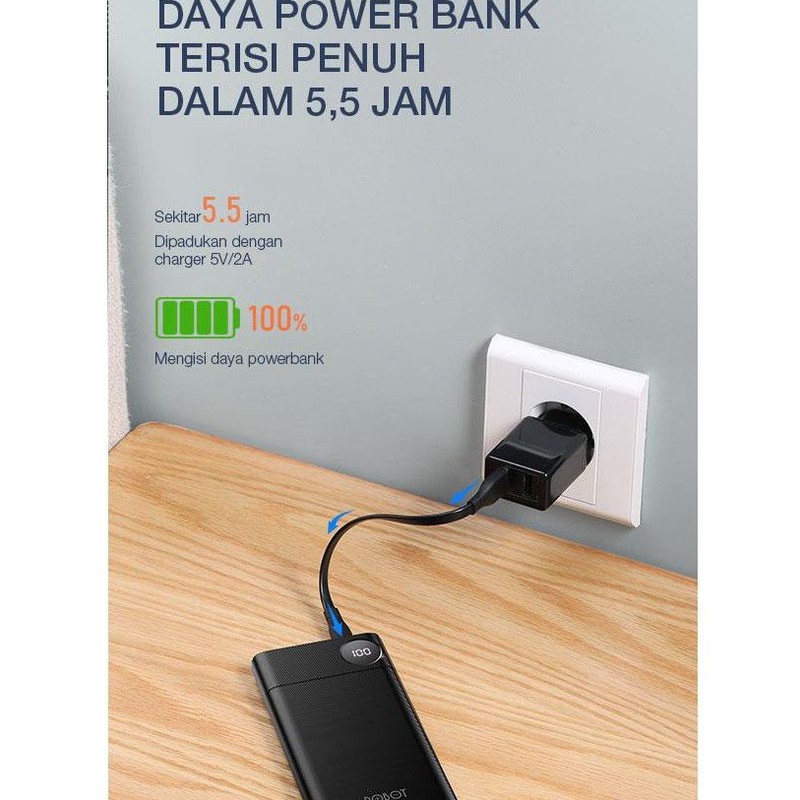 ROBOT RT180 PowerBank 10000mAh Dual Input Port Type C & Micro USB Power Bank Real Capacity Original - Garansi Resmi 1 Tahun