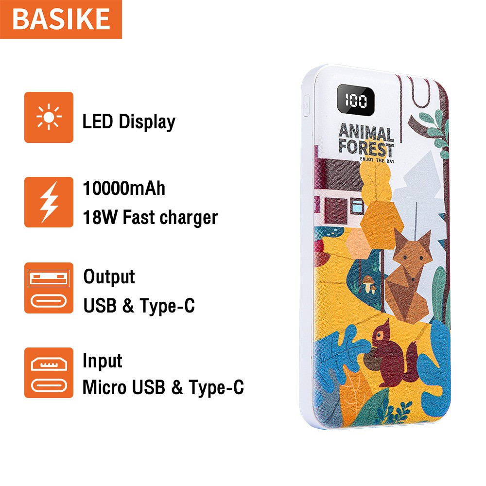 Jual Power Bank Dual USB Fast Charging Murah 18W PD Q.C 3.0 Karakter Mini 10000mAh Powerbank LCD BASIKE murah Iphone 13 mini pro max 11 xr x 10 8 7 6 xiaomi Samsung Oppo Vivo hp murah Realme Redmi infinix Ipad Gadgets