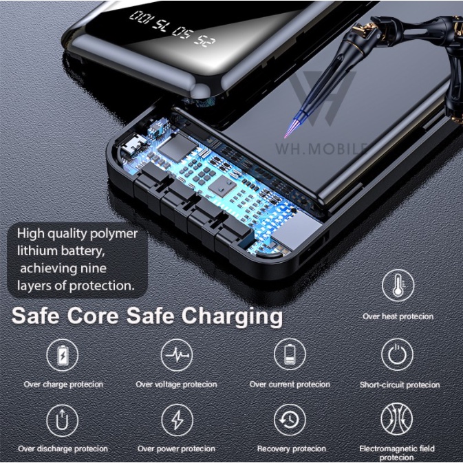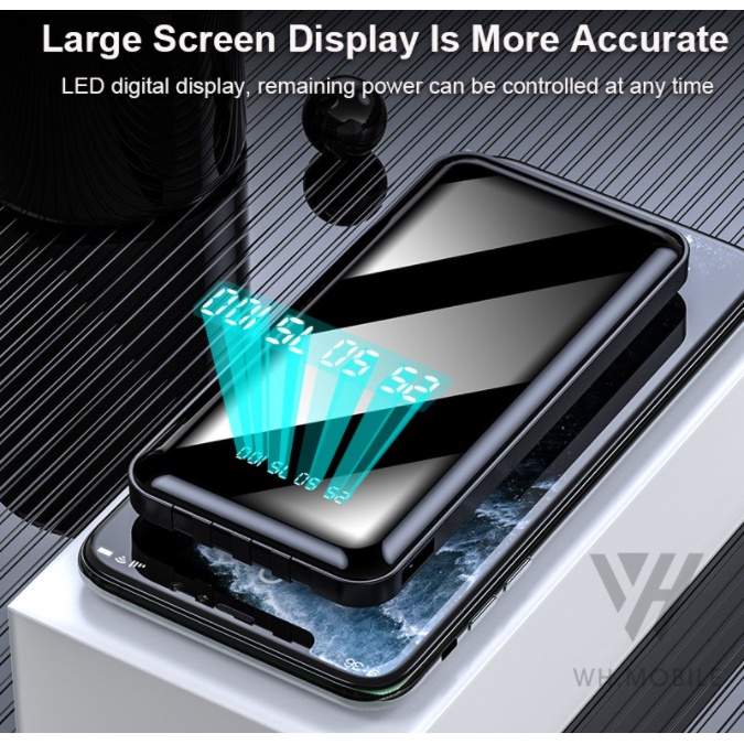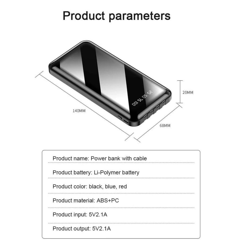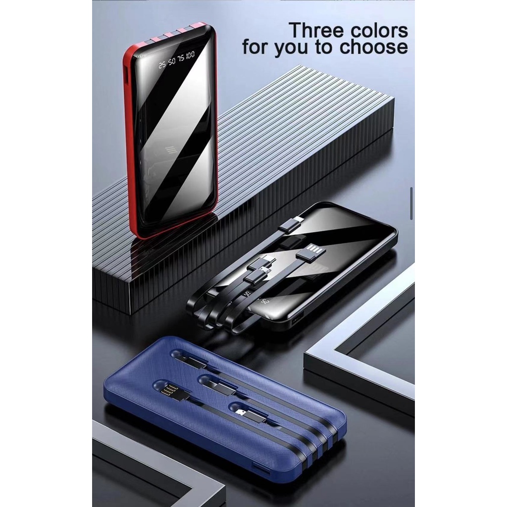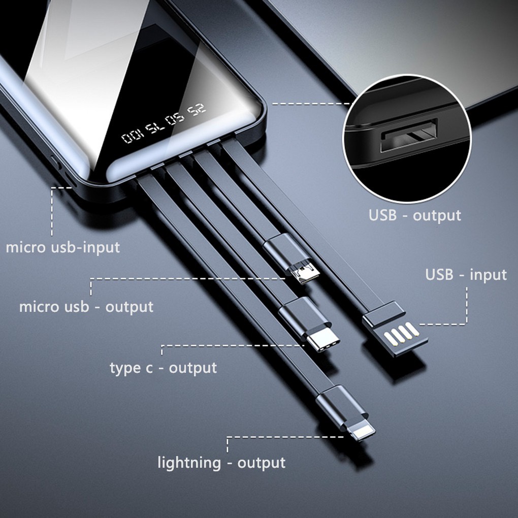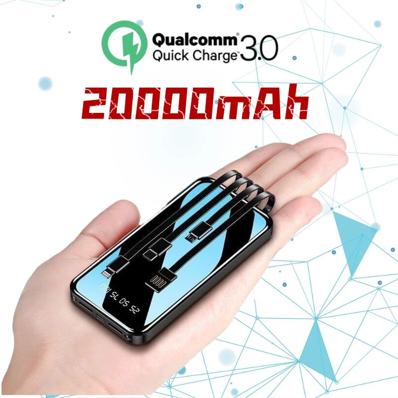20000mAh Powerbank 3 Cables Fast Charging Full Capacity Mini Dual USB Portable Digital Display LED