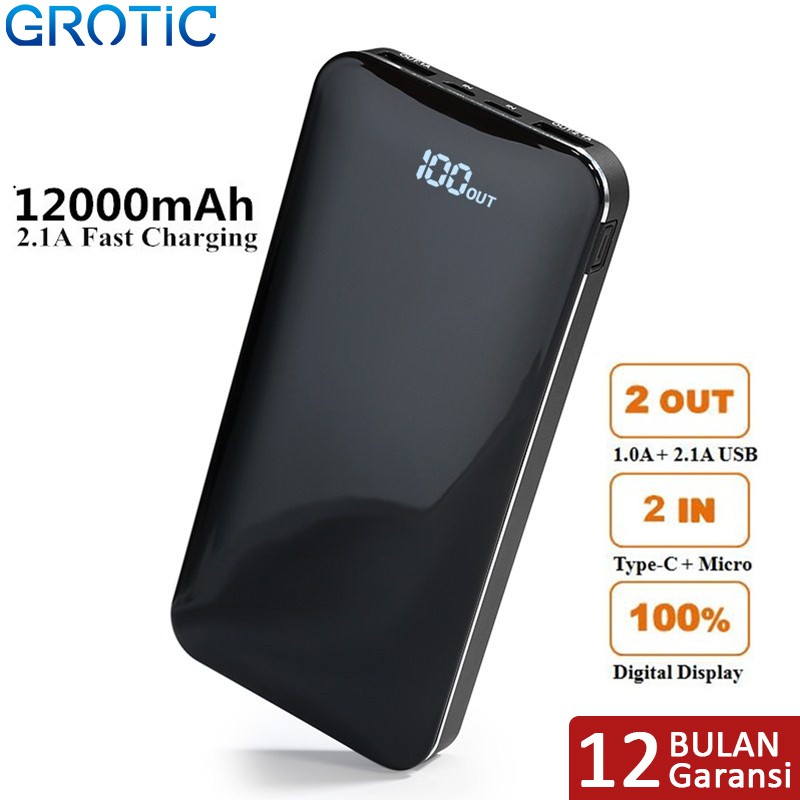 Rekomendasi Produk Lain terkait GROTIC Powerbank 12000mAh Dual Input Type C & Micro Dual Output with LED Display Power Bank GY11