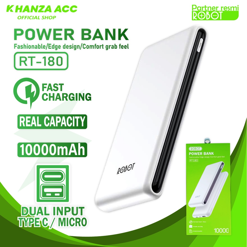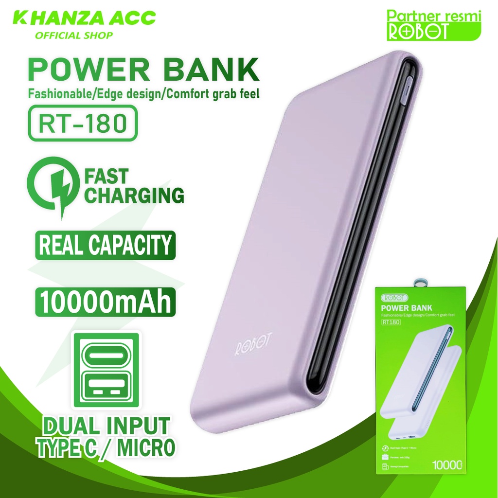 Beli KHANZAACC PowerBank ROBOT 10000mAh RT180 Dual Input Port Type C & Micro USB Sekarang Juga