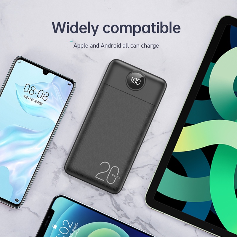 Power Bank Dual USB LCD BASIKE 10000 mAh Mini Murah Fast Charging 2 Input Original Android iPhone